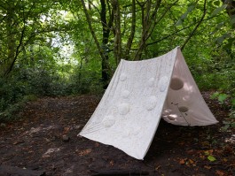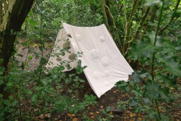 The tent is an imagined second skin, a ‘psychic’ envelope that encourages us to think about surfaces and how they become sites for interpretations, ambiguity, and complications. Creating textile sculptures is a way for me to explore concepts of incomplete spaces, intimacy and the idea of ‘ad-hoc self-making.’